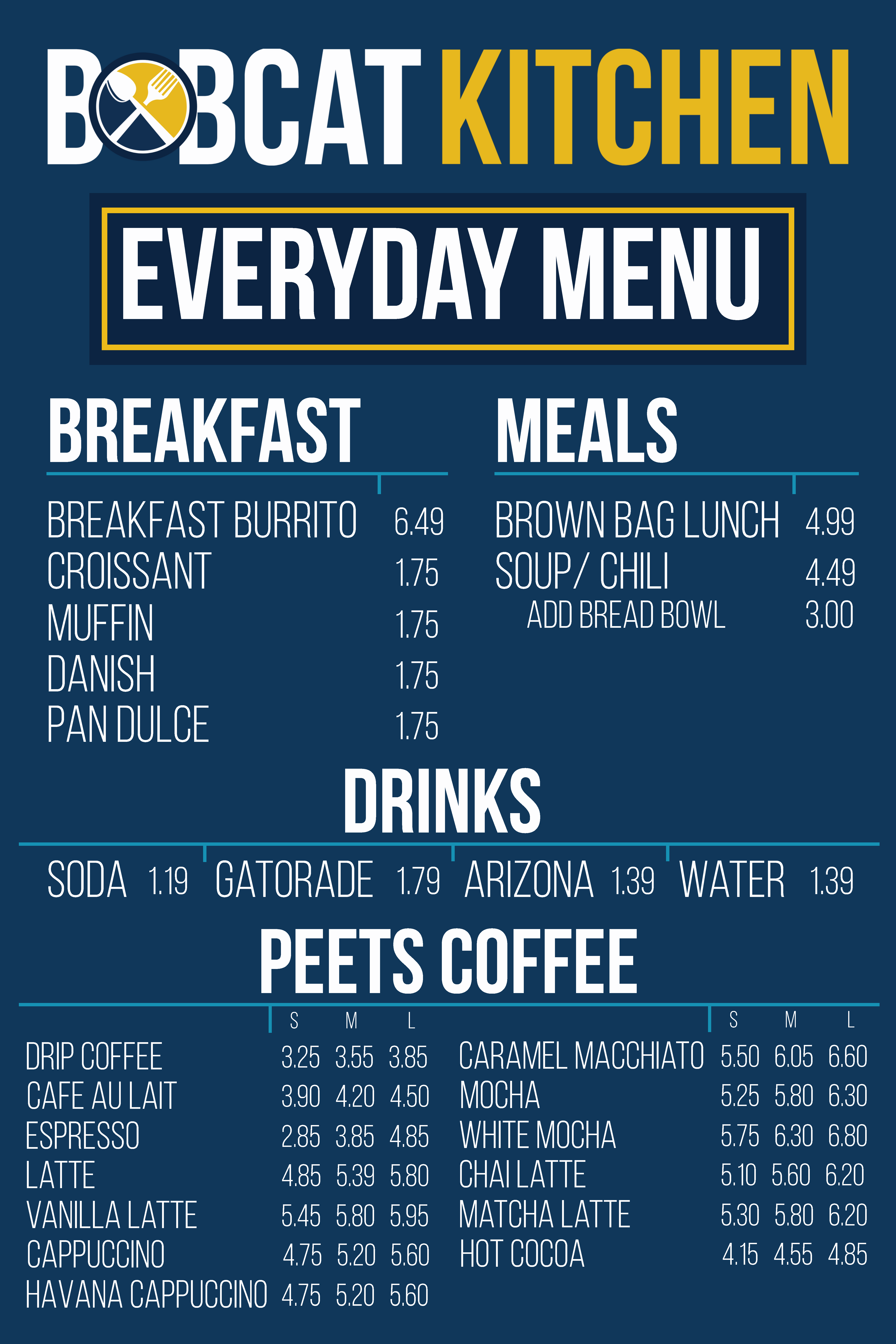 Coffees * Cold Drinks * Tacos * Hot Dogs * Deli Sandwiches * Grab & Go Items