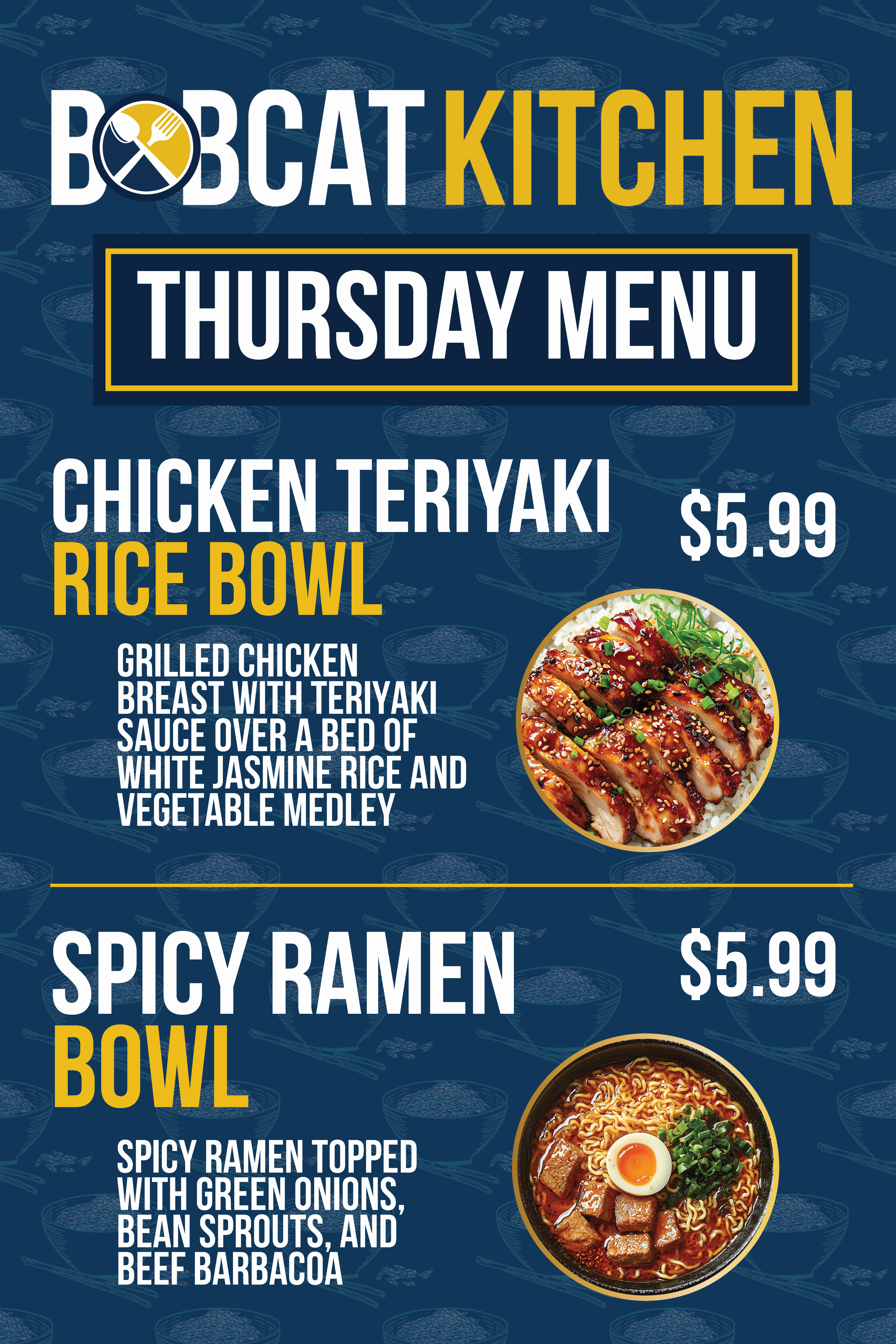 Food trucks are located on Scholars Lane in front of the Yablokoff Wallace Dining Center. Food trucks accept credit and debit cards, cash and Cat Dollars. Food trucks do not accept meal plan card swipes.
